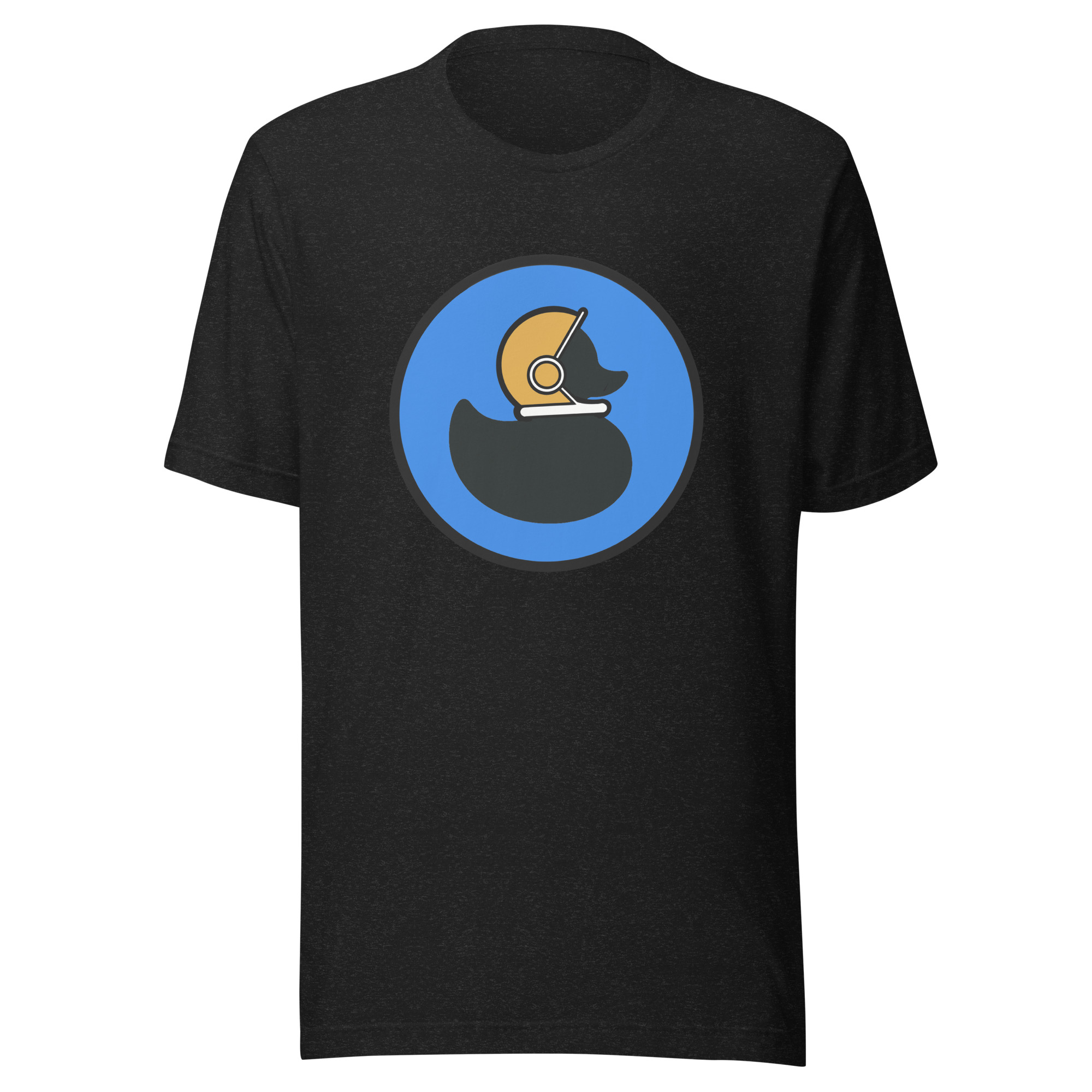 Simple, bold, and unmistakably duck. Featuring our signature helmeted duck logo front and center, with BubbleDuck.Dev on the back. Soft tri-blend fabric makes it as comfortable as it is geek-chic—perfect for meetups, hackathons, or just repping the flock.